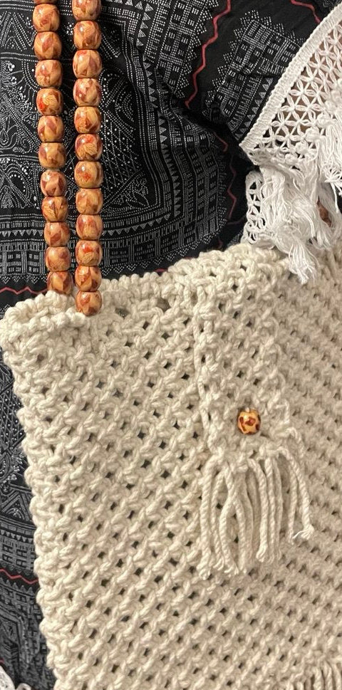 Handwoven macrame Tote Bag . Crafted from 100% natural cotton cord